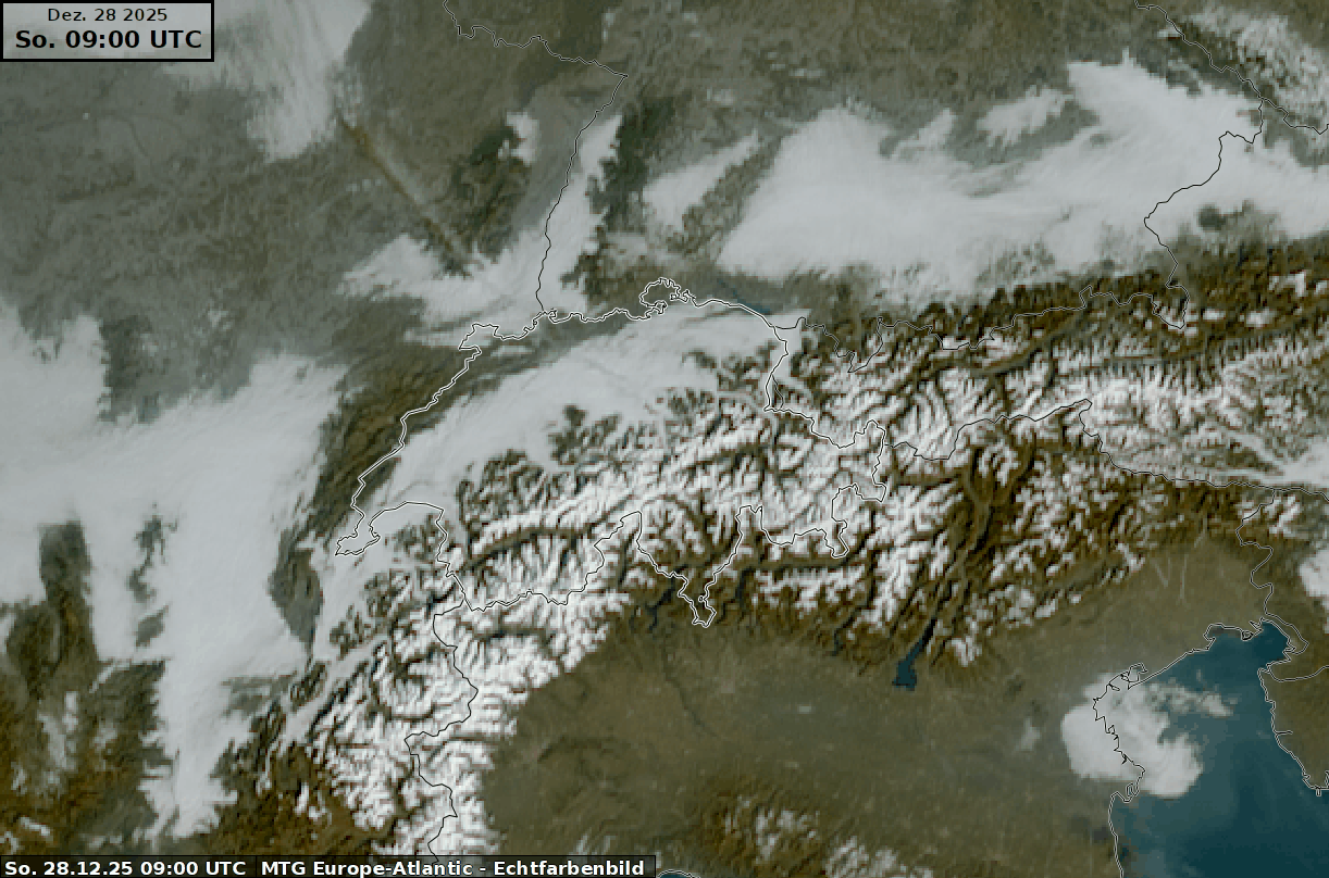 Auf der Alpennordseite hat sowohl im Kaltluftsee als auch über dem Nebelmeer die Bise wieder eingesetzt, wobei von Nordosten her trockenere Luft in den nebligen Kaltluftsee eingemischt wurde. Ausgehend vom Bodensee her lockerte sich der Hochnebel im Mittelland im Tagesverlauf gebietsweise auf.